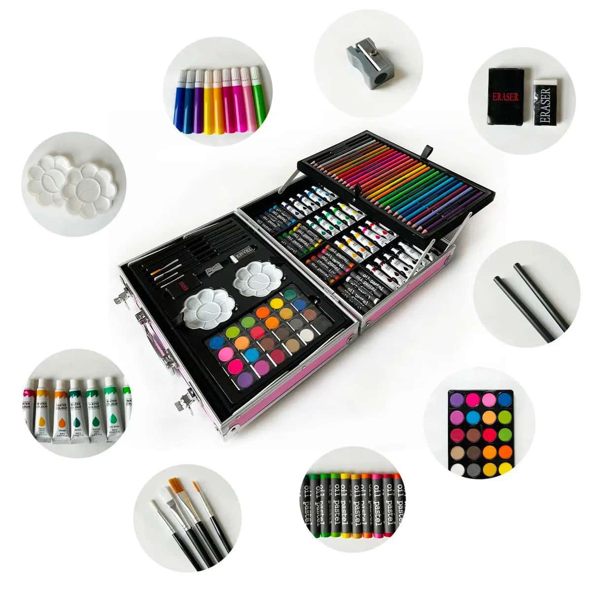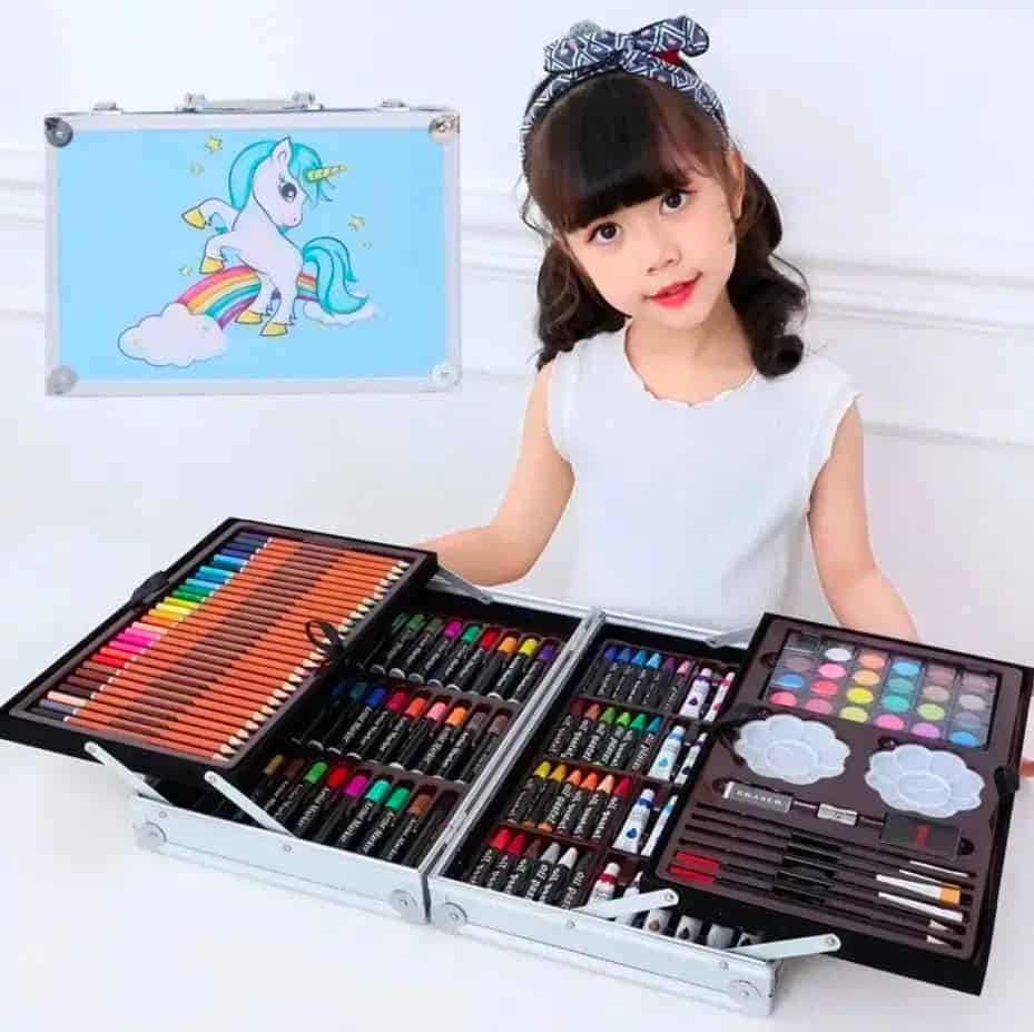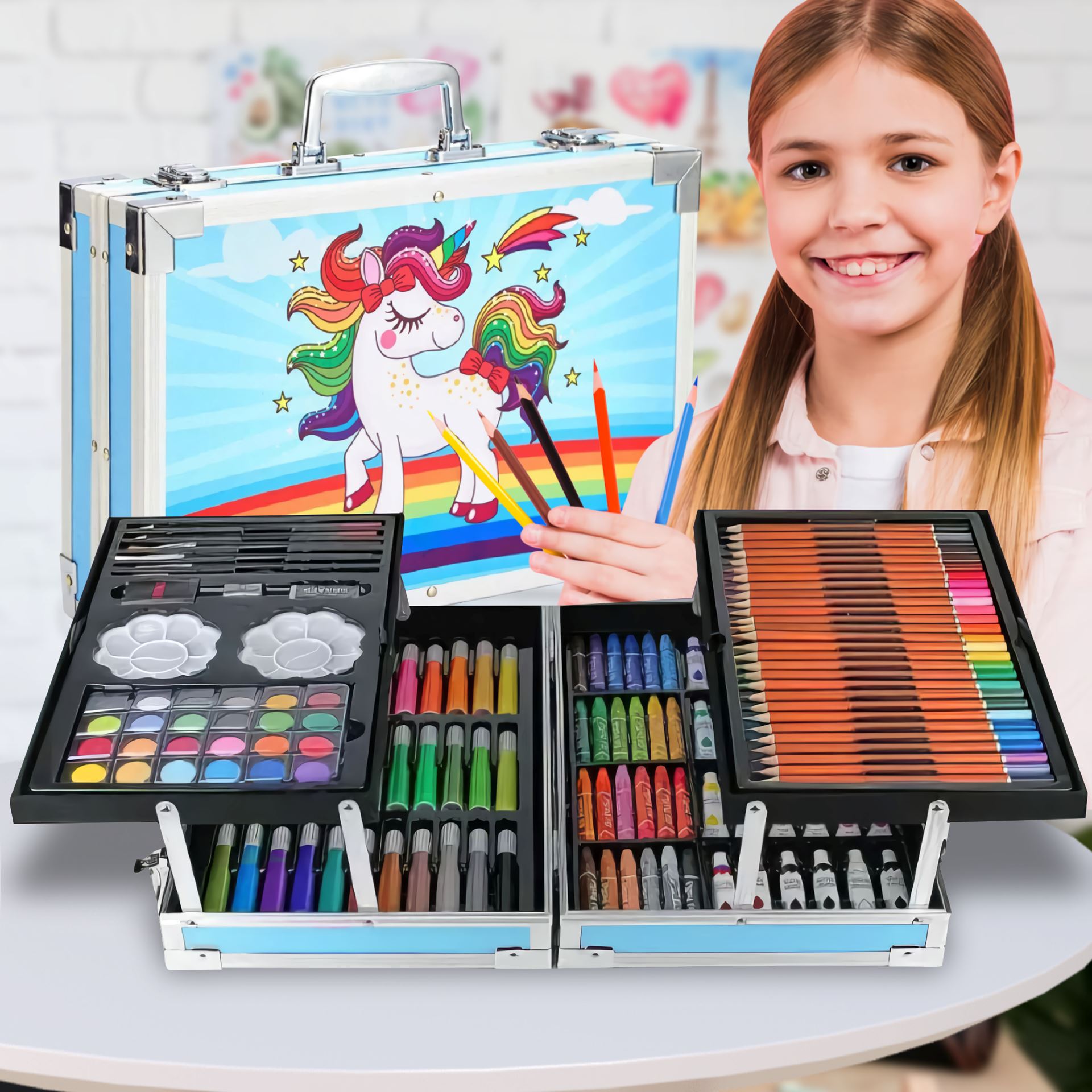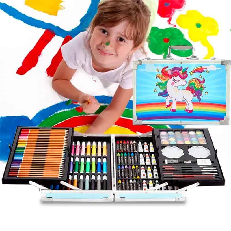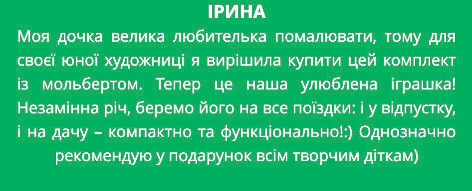Дитина зможе малювати все, що тільки забажає, різноманітність кольорів дозволить їй створювати будь-які картини. У набір входять: олівці, фломастери, фарби, воскова крейда та багато іншого.
